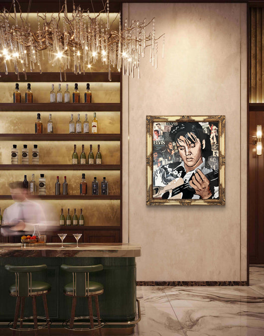 Elvis Presley made out of his vinyl records and album covers with a beautiful antique frame. Luxury Collection.